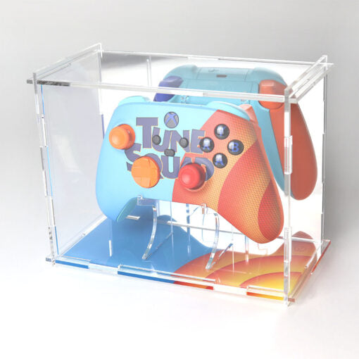 This Space Jam: A New Legacy Dual Case & Controller Stand is perfect for enthusiasts looking to showcase their collection. These cases effectively protect your controllers from dust and damage while also complementing the Space Jam: A New Legacy Tune Squad Xbox Series X / S Controller and Game. Each case features an integrated controller stand and is made from high-quality branded 3mm acrylic. The easy push fit, slotted design ships flat-packed with protective film on both sides for safe transit. Be sure to remove this film before assembling the case. The back panel is only available in Silver Mirror and dimensions for maximum internal storage are 185 x 140 x 85mm. As an added bonus, we also offer other Space Jam-themed items, such as a Boxed Controller Display Case and a Printed Controller Stand. Our extensive collection includes acrylic display cases for a variety of modern and retro game platforms, consoles, and controllers. Keep your prized possessions safe from wear and tear as a collector with our custom and personalized products.